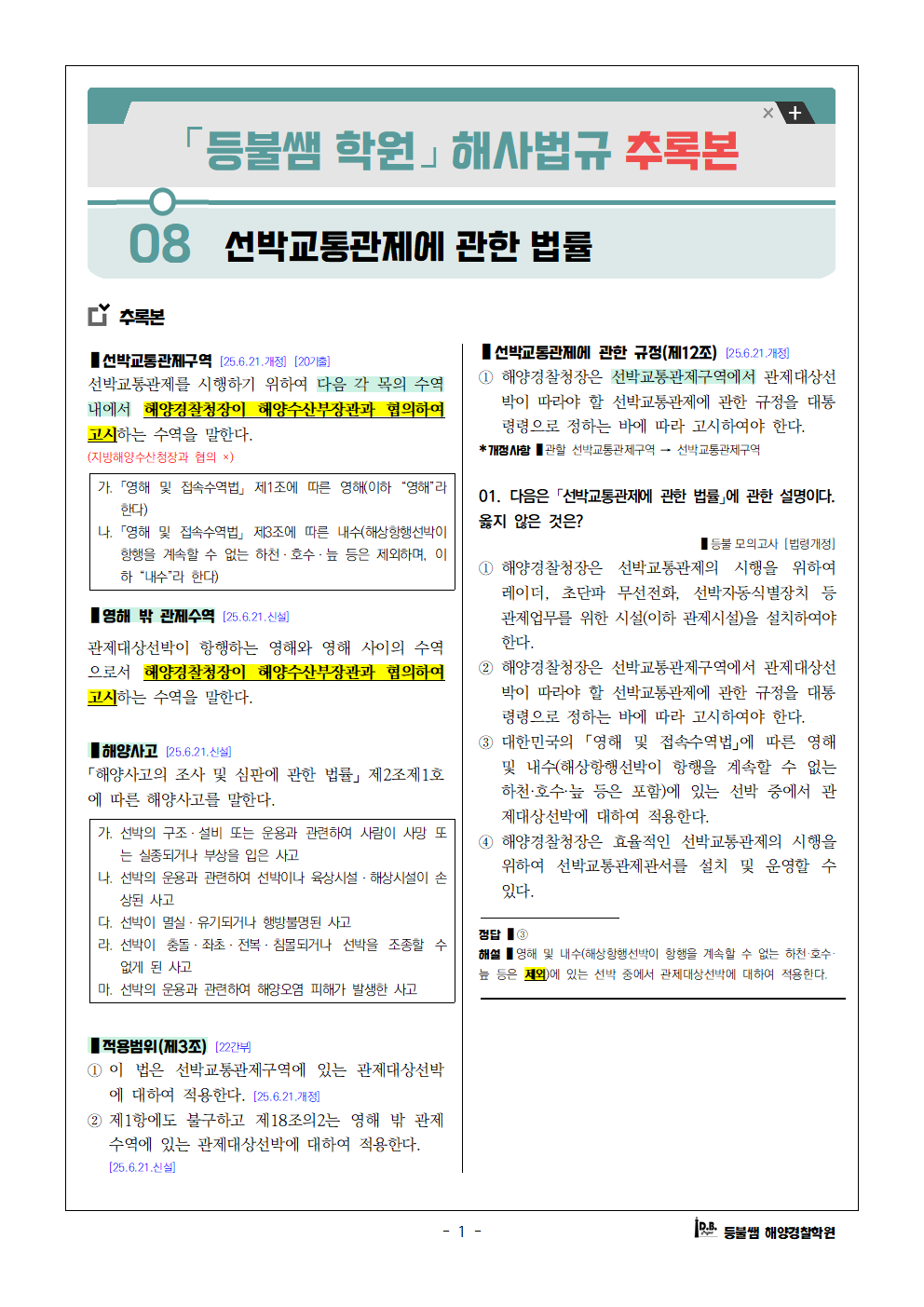[등불18기] 해사법규 - 수상레저안전법 추록본 (250422)