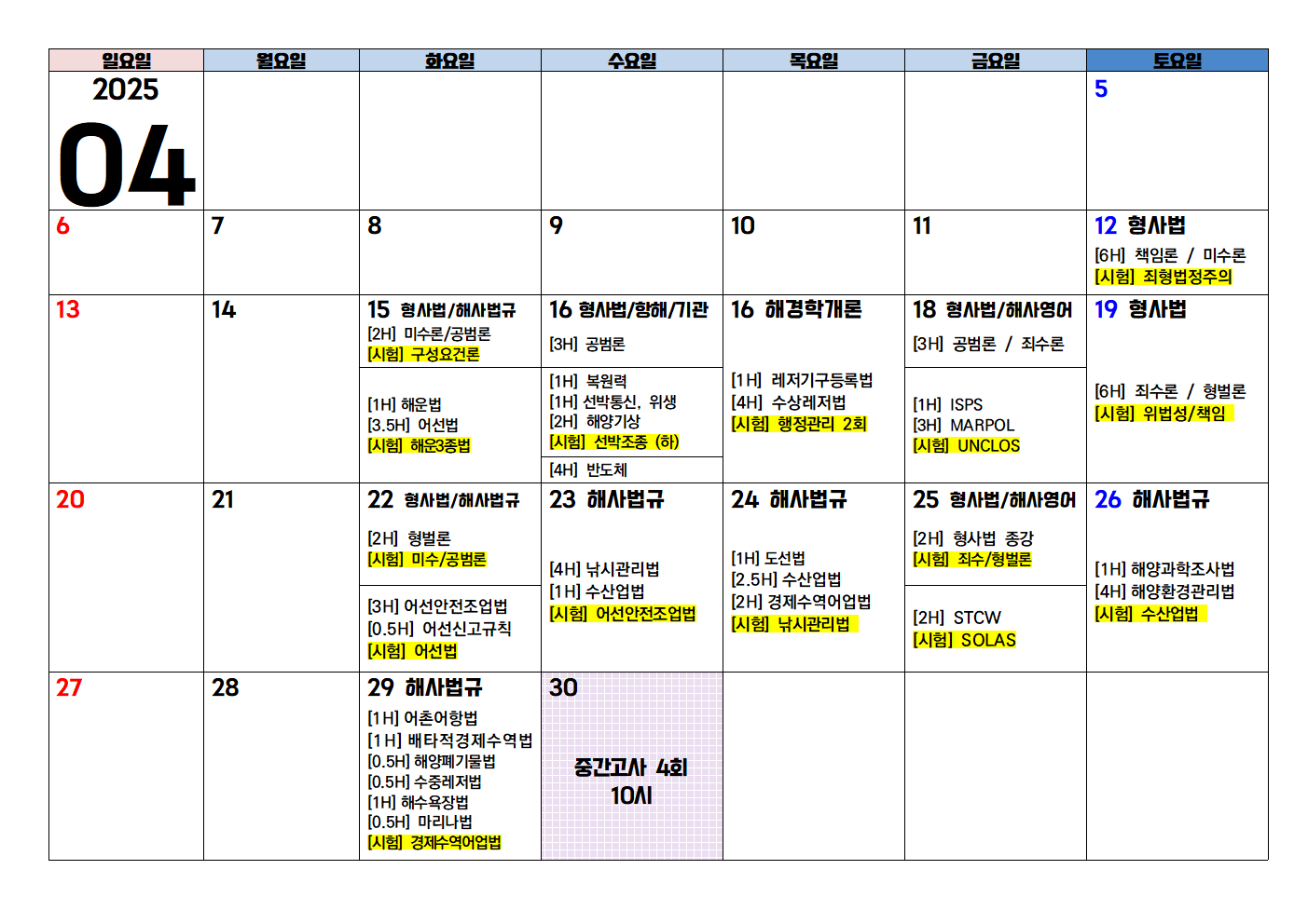 [25년 상반기 대비] 등불18기 4월 커리큘럼 (실강 수강생)