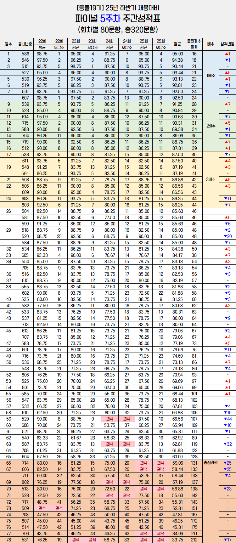 <25년 해양경찰 채용 대비> [5주차] 파이널 주간 성적표