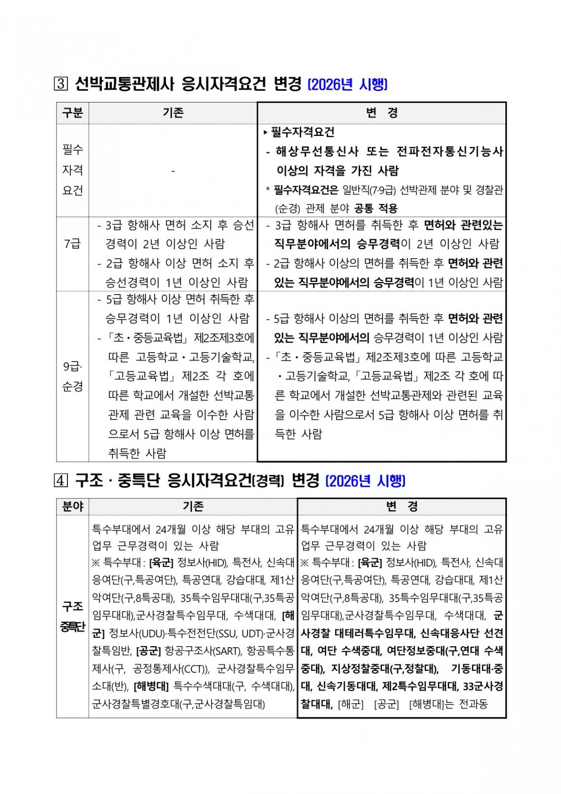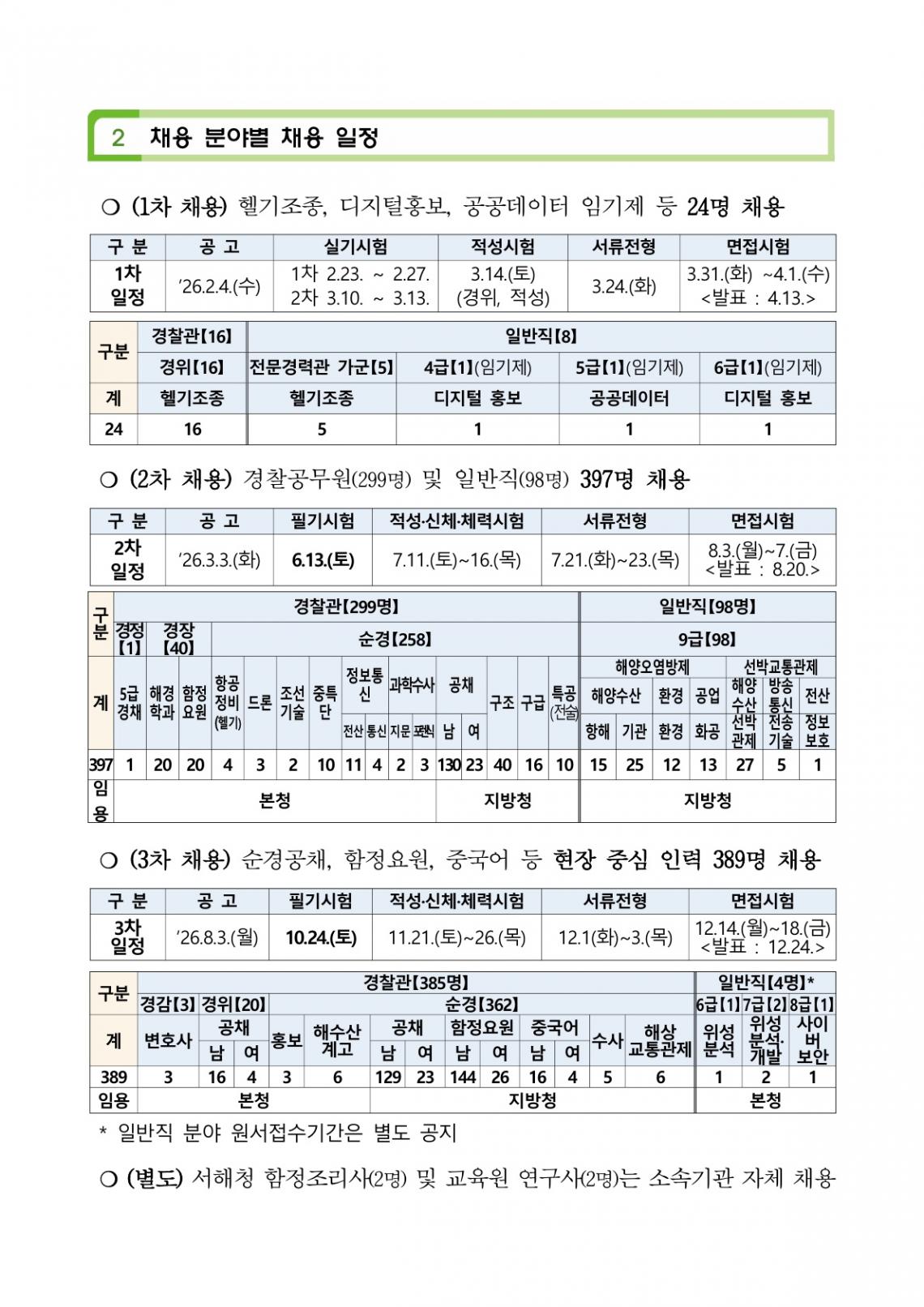 [공고] 26년도 해양경찰 공무원 연간채용계획 등 알림 + 변경되는 채용 제도 (출처:해경청)