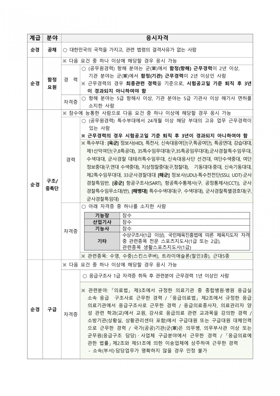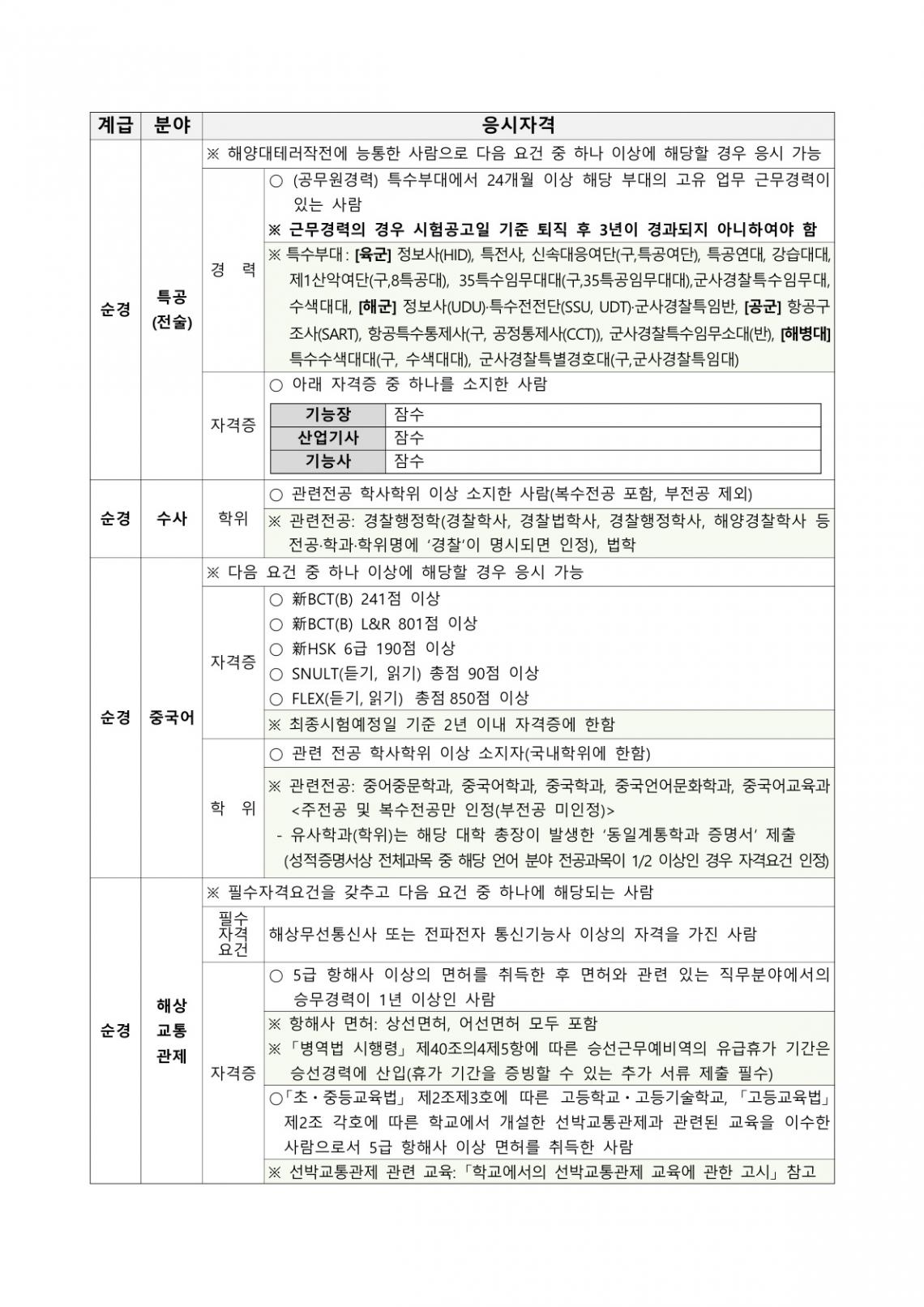 [26년 1월 기준] 해양경찰 채용 가산점 관련 (가산 배점표, 무도 인정단체 등)